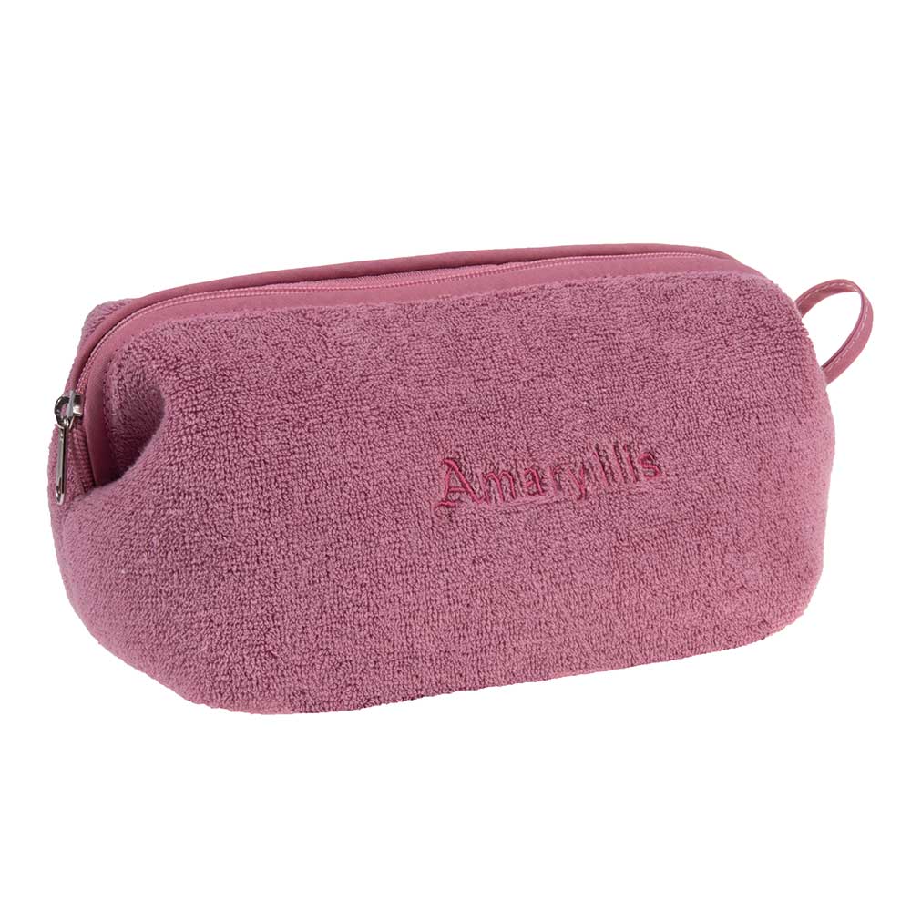Çantë tualeti e madhe në ngjyrë rozë, prej materiali peshqir