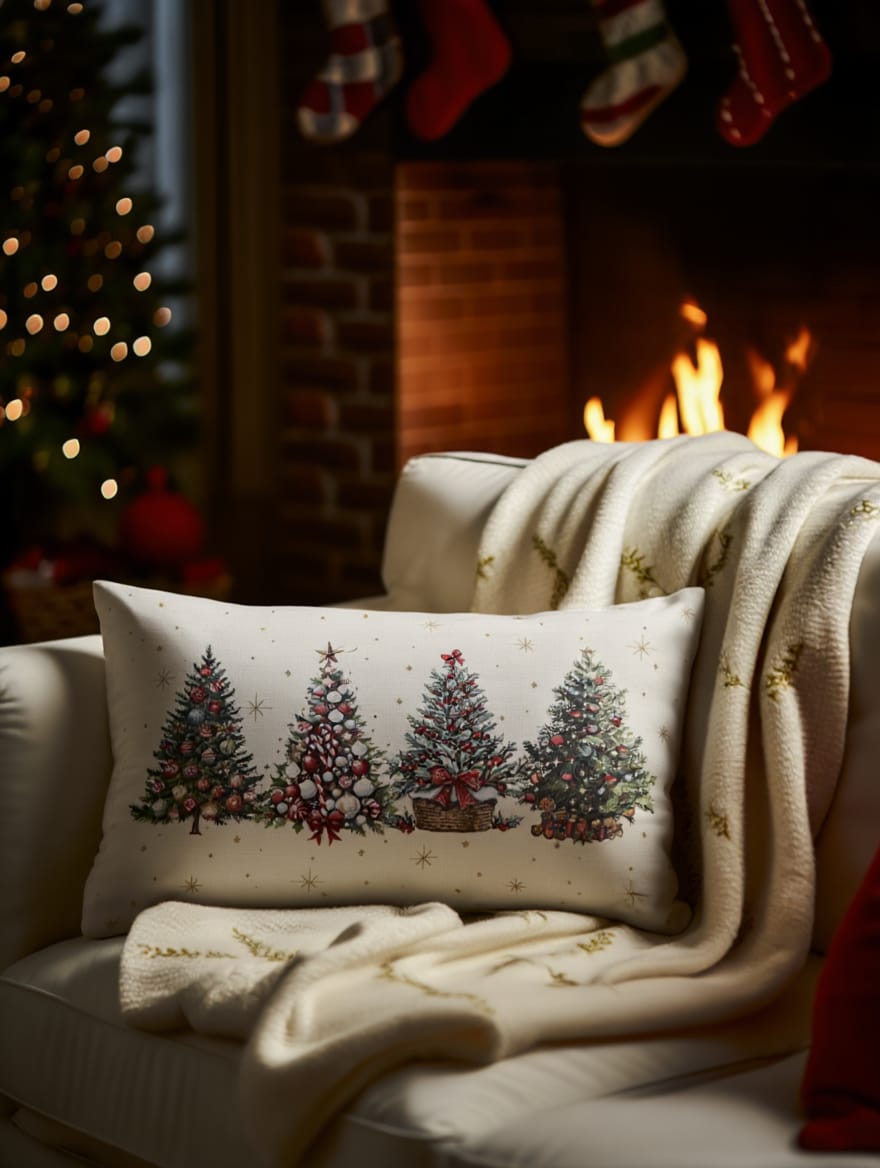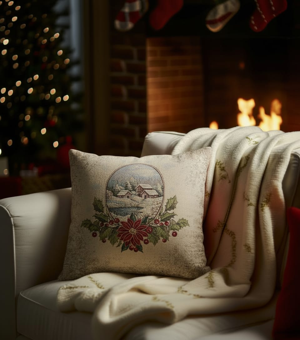 Këllëf jastëku dekorativ me motive krishtlindje pa mbushje