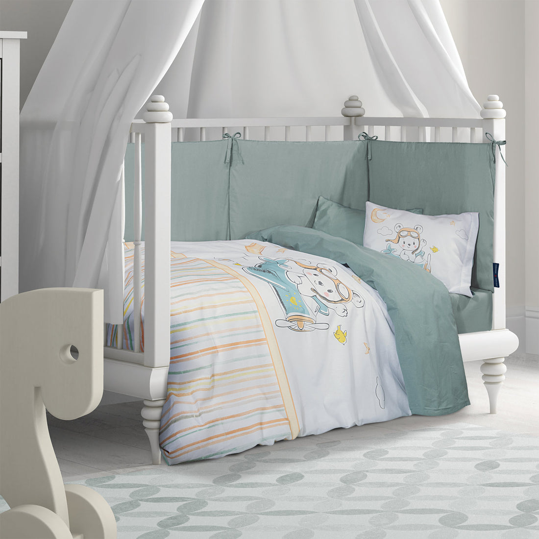 Përshkrimi: Set çarçafi bebi, i cili përbëhet nga 2 fletë çarçafi me përmasë 125x170cm dhe 1 këllëf jastëku me përmasë 30x40cm....