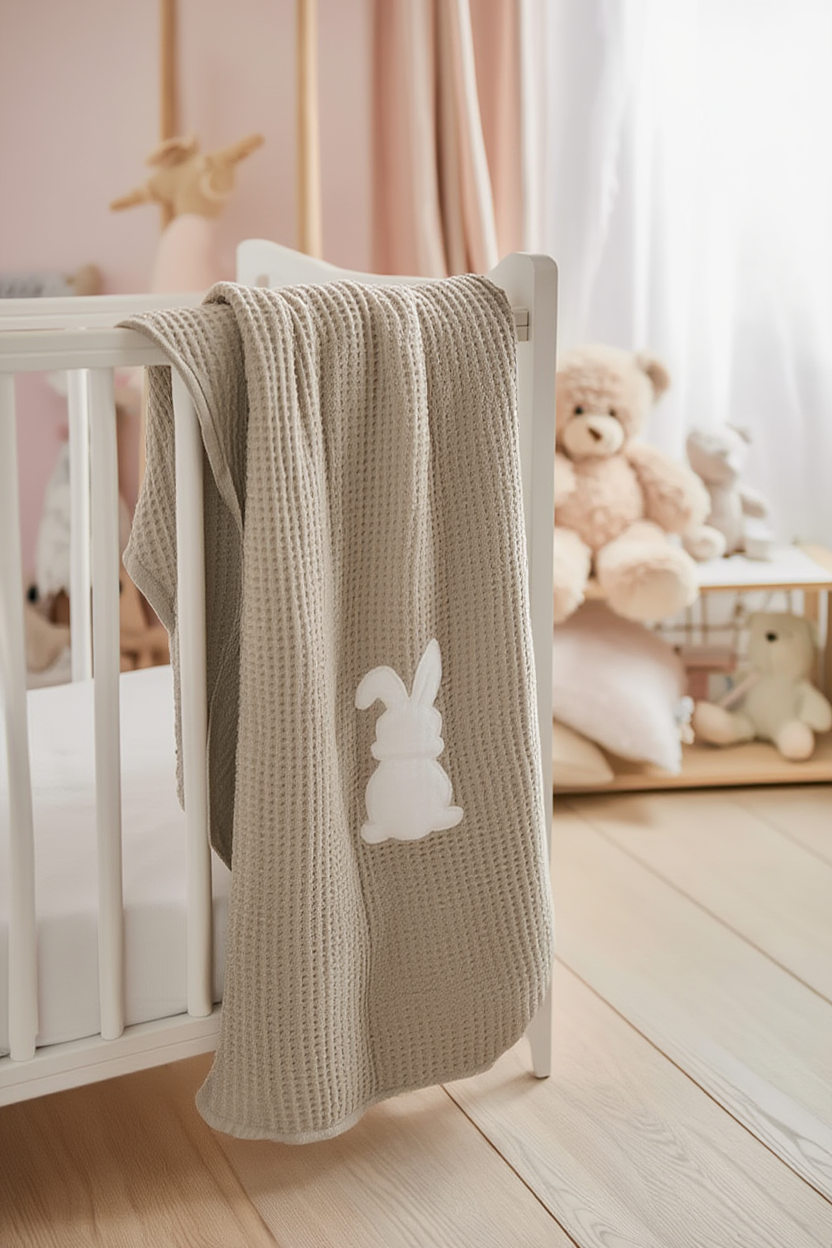 Batanije bebi waffle e butë dhe ajrosëse, ideale për lëkurën delikate të foshnjës. Dizajn elegant...