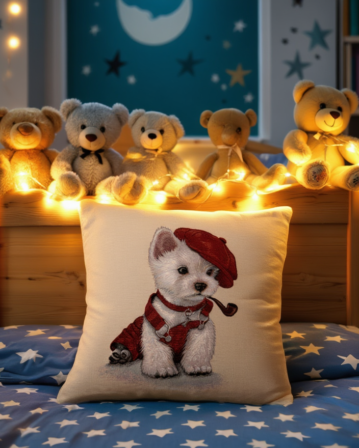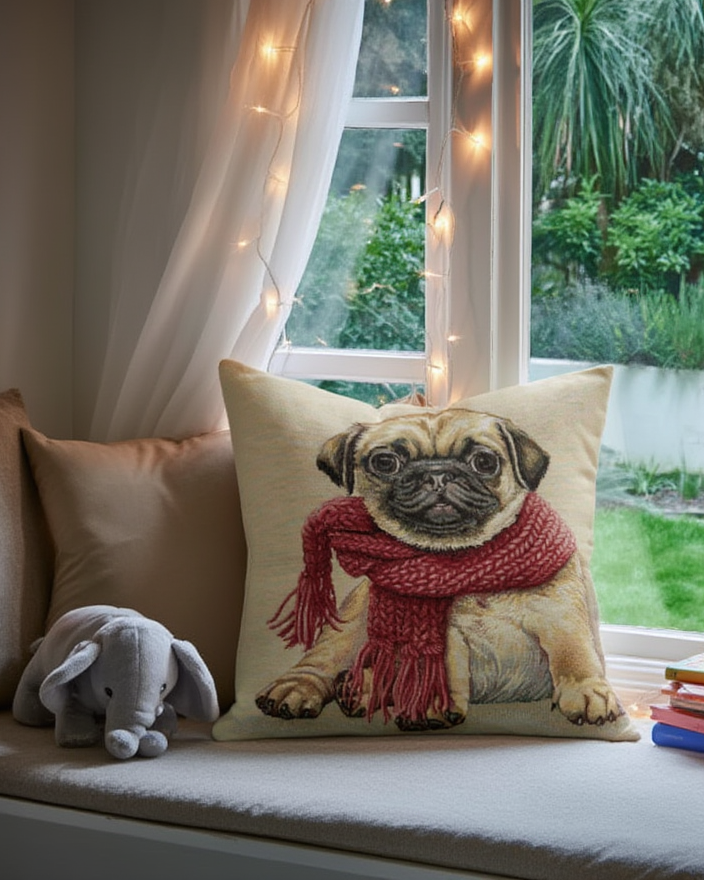 Ky jastëk dekorativ me ilustrim të ëmbël të një qeni sjell menjëherë ndjesi ngrohtësie dhe...
