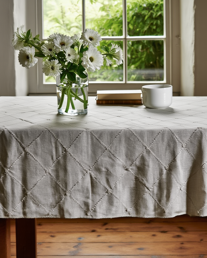 Mbulese tavoline me stil natyral dhe dizajn floral të punuar me finesë, në ngjyra neutrale...
