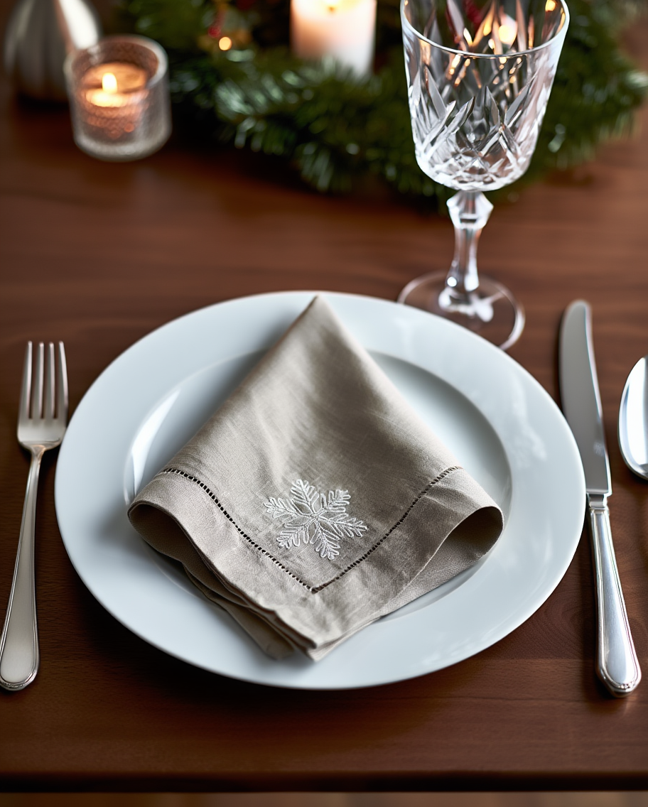 Shtoni një prekje të ngrohtë dhe festive tryezës tuaj me këtë mbulesë tavoline prej linoje...