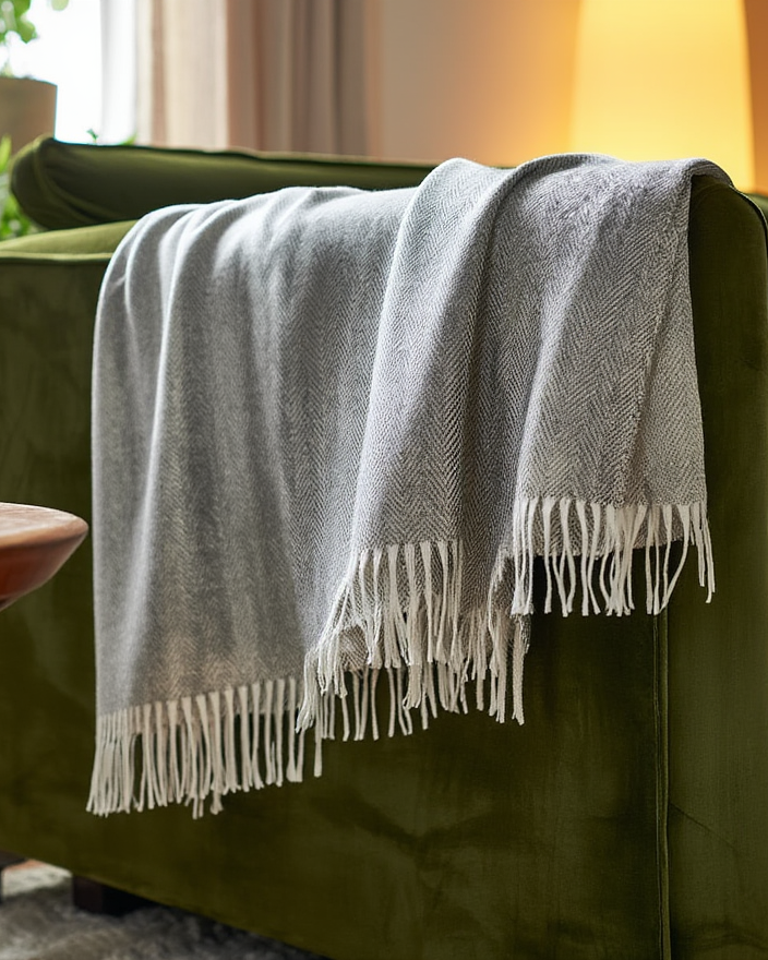 Batanije elegante dhe e butë, ideale për të shtuar ngrohtësi dhe stil në dhomën e gjumit apo ambientin e ndenjjes. Teksturë delikate, ngjyrë neutrale dhe dizajn minimalist që kombinohet lehtësisht me çdo arredim. Perfekte për relaks, dekor ose si dhuratë.