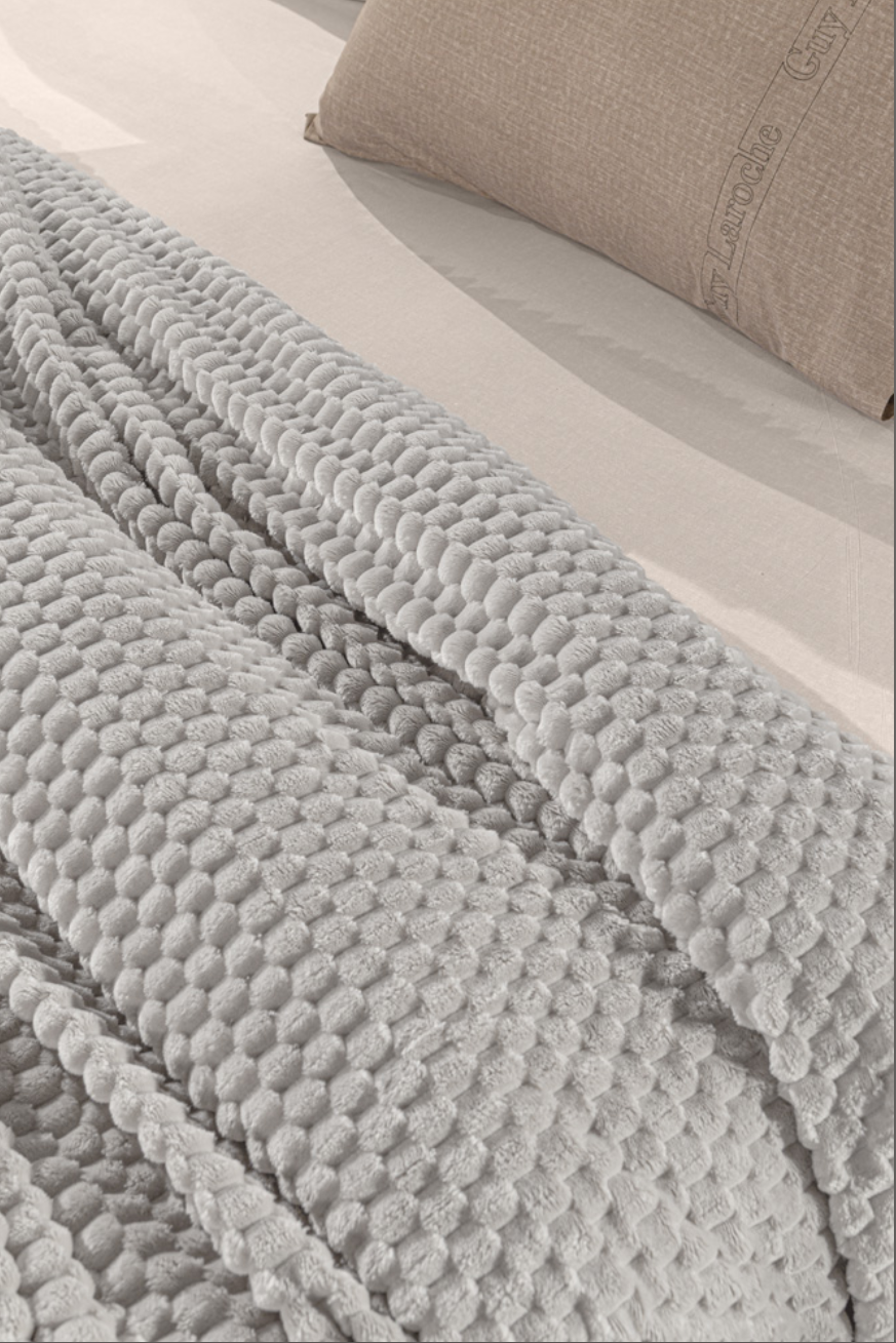 Seti përfshin një batanije, ideale për shtrat tek ose dopio, si dhe një jastëk dekorativ që plotëson në mënyrë perfekte stilin e saj. Zgjedhja ideale për komoditet maksimal dhe dekor të sofistikuar.