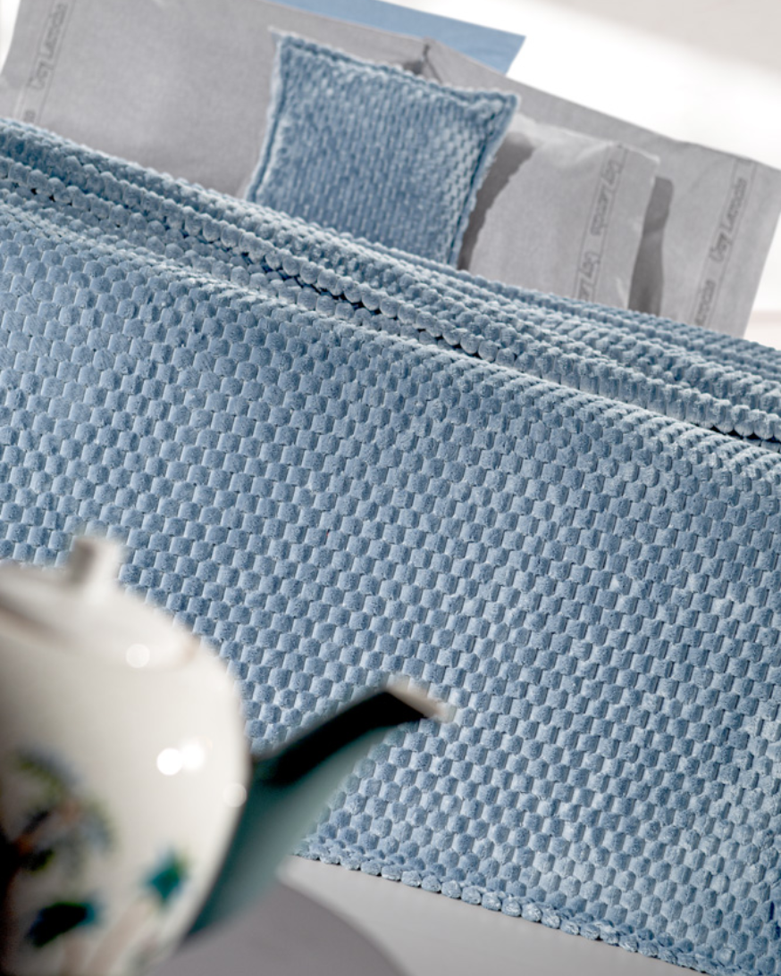 Seti përfshin një batanije, ideale për shtrat tek ose dopio, si dhe një jastëk dekorativ që plotëson në mënyrë perfekte stilin e saj. Zgjedhja ideale për komoditet maksimal dhe dekor të sofistikuar.