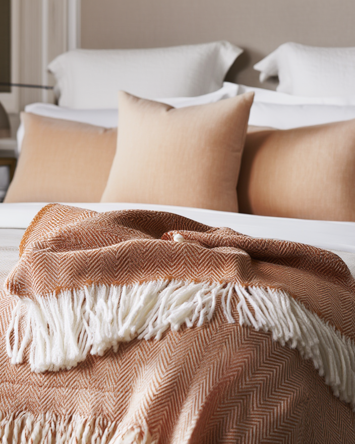 Batanije elegante dhe e butë, ideale për të shtuar ngrohtësi dhe stil në dhomën e gjumit apo ambientin e ndenjjes. Teksturë delikate, ngjyrë neutrale dhe dizajn minimalist që kombinohet lehtësisht me çdo arredim. Perfekte për relaks, dekor ose si dhuratë.