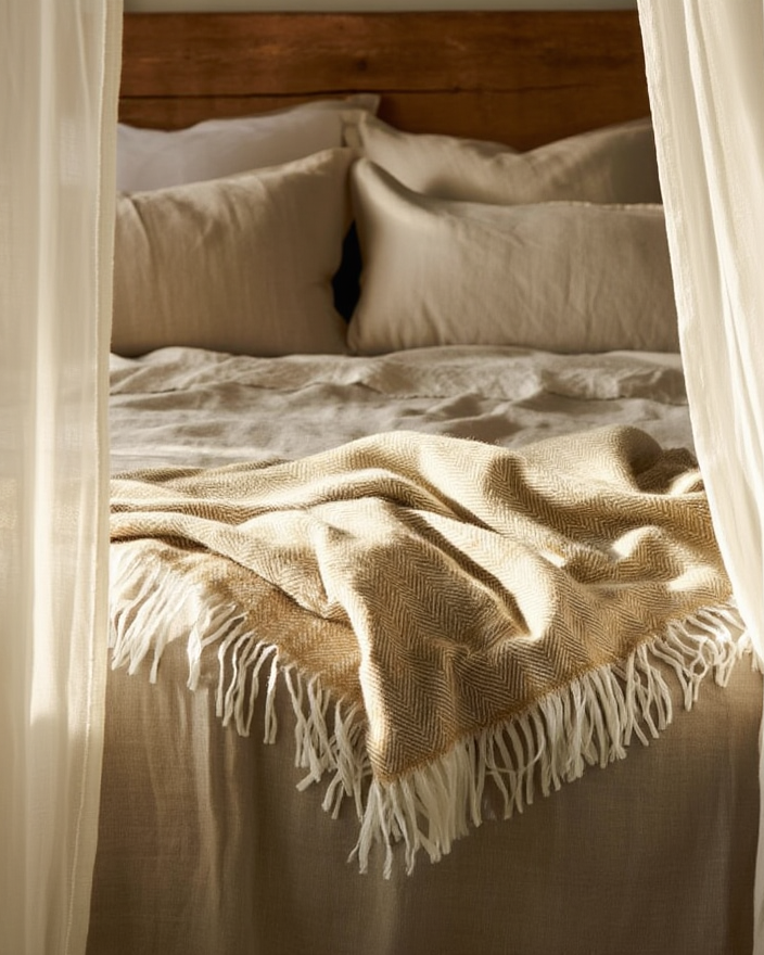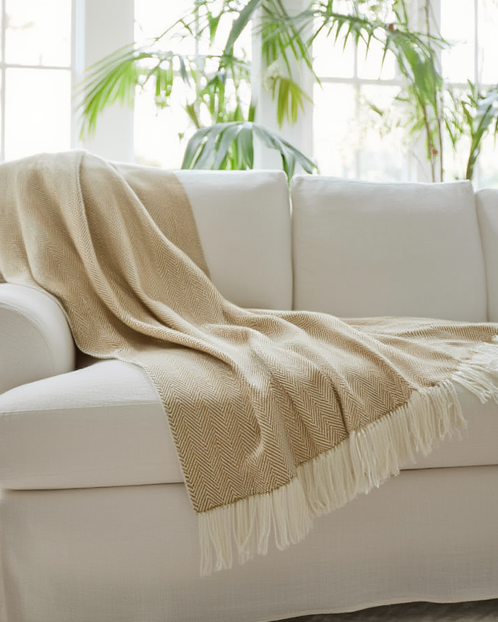 Batanije elegante dhe e butë, ideale për të shtuar ngrohtësi dhe stil në dhomën e gjumit apo ambientin e ndenjjes. Teksturë delikate, ngjyrë neutrale dhe dizajn minimalist që kombinohet lehtësisht me çdo arredim. Perfekte për relaks, dekor ose si dhuratë.