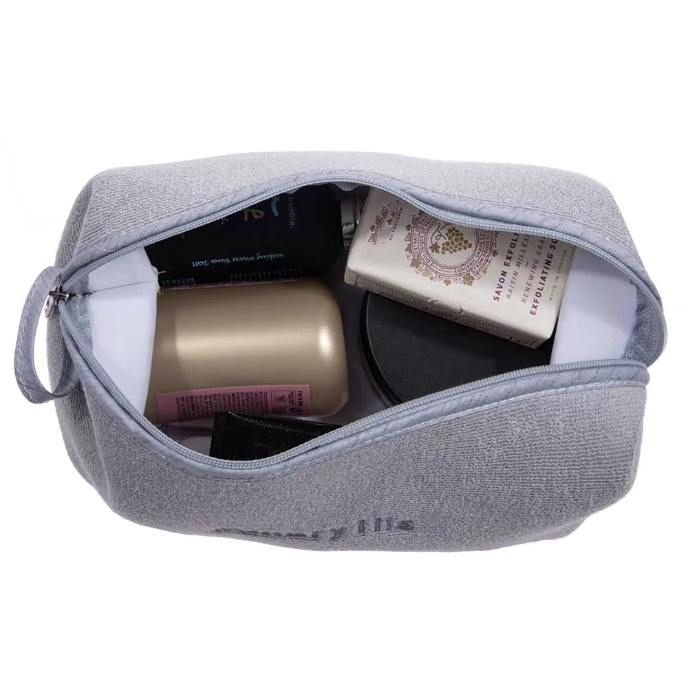 Çantë tualeti e madhe në ngjyrë gri, prej materiali peshqir