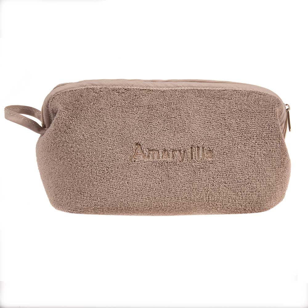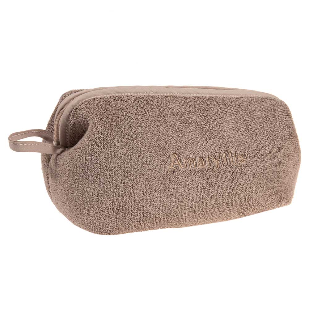 Çantë tualeti e madhe në ngjyrë kafe, prej materiali peshqir