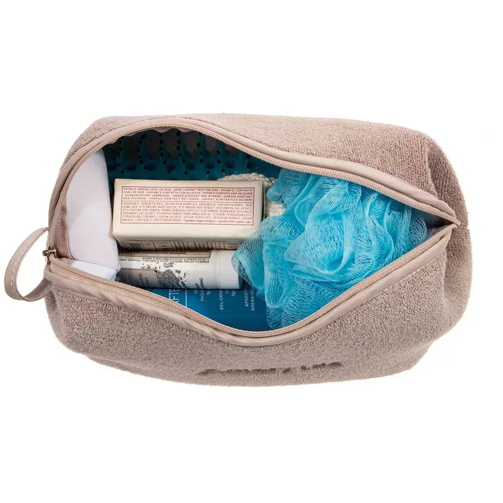 Çantë tualeti me zinxhir, e punuar nga peshqir cilësor që i reziston përdorimit të përditshëm.