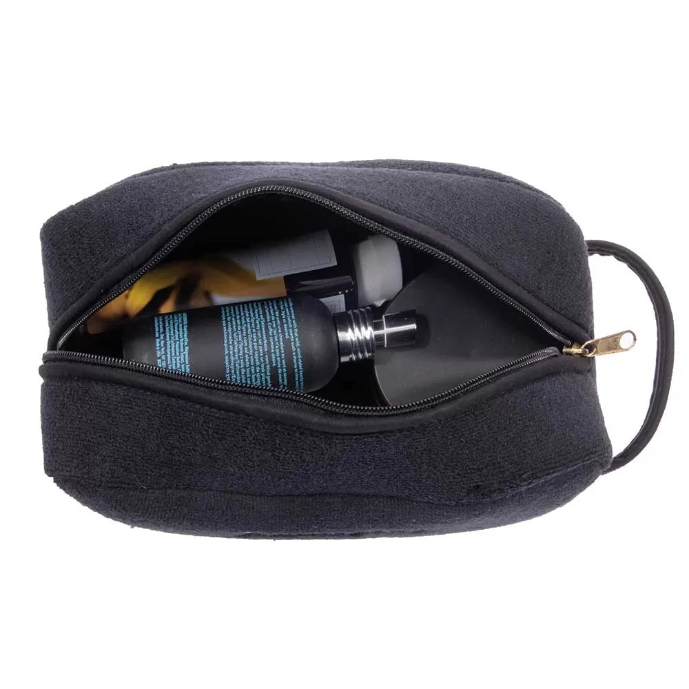 Çantë tualeti nga peshqir pambuku, ngjyrë e zezë, me dorezë