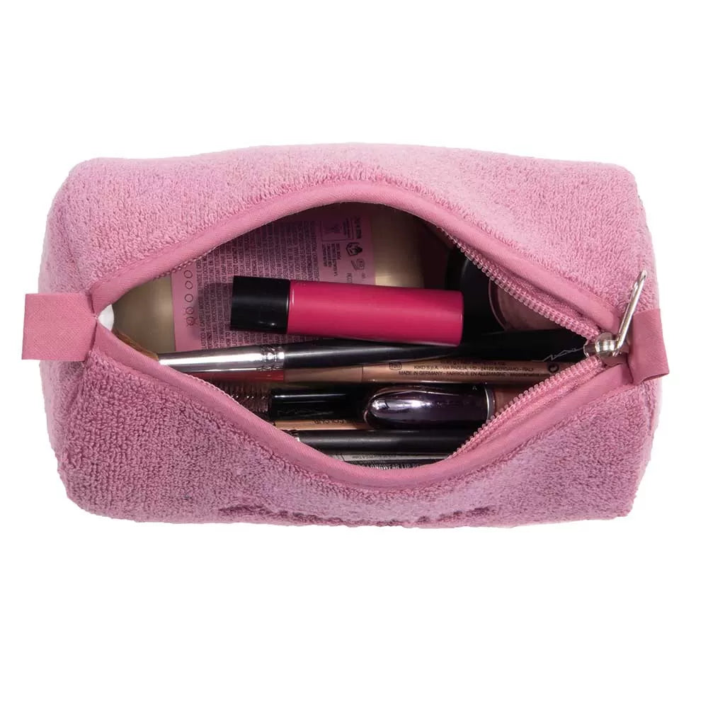 Çantë tualeti në formë kuti, prej peshqiri, ngjyrë rozë e errët