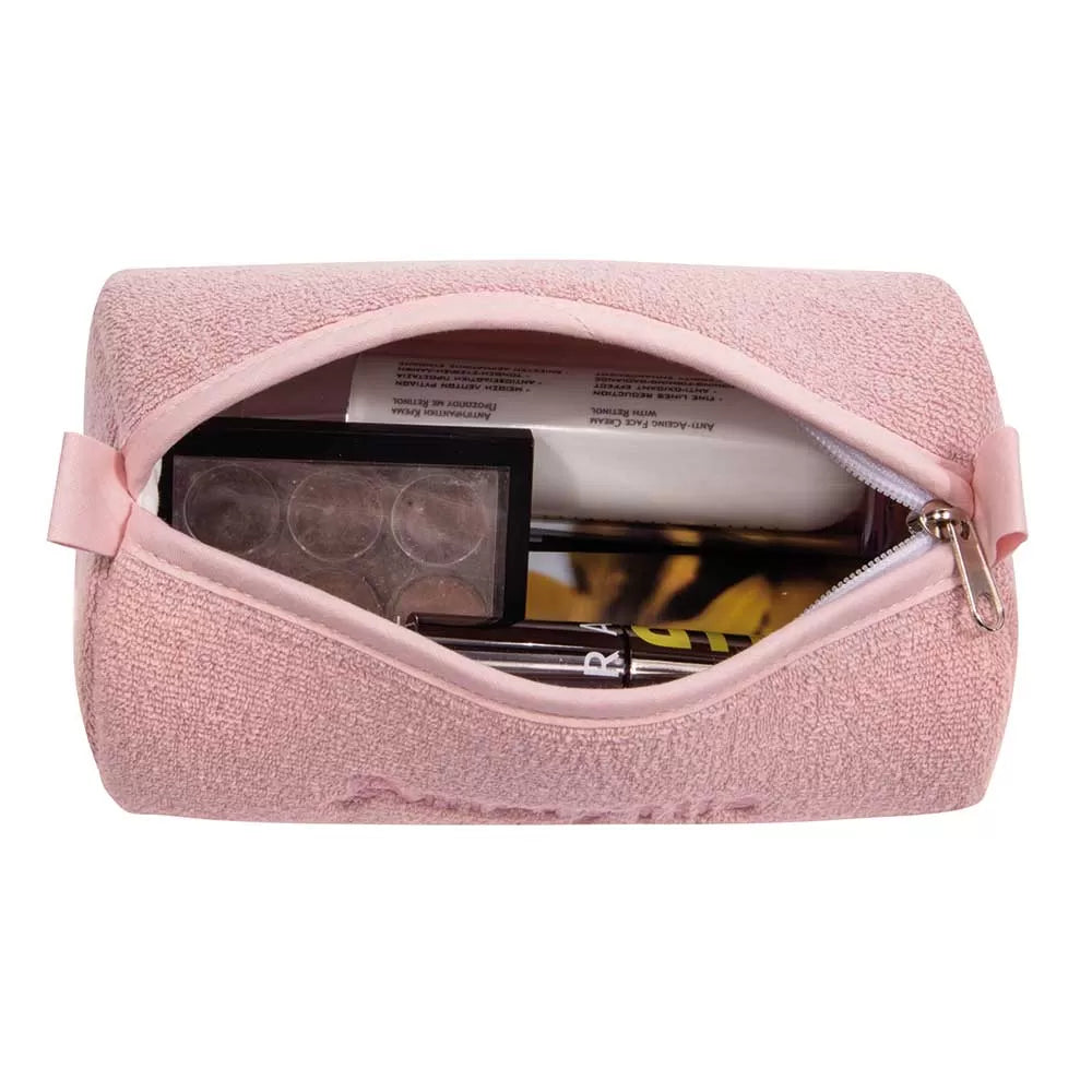 Çantë tualeti në formë kuti, prej peshqiri, ngjyrë rozë