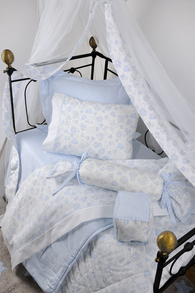 Përshkrimi: Set çarçafi për bebe, i cili përbëhet nga 2 fletë çarçafi me përmasë 110x170 dhe 1 këllëf jastëku me përmasë 35x45