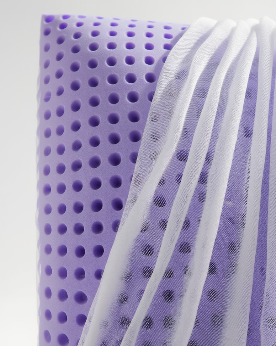 Jastëk anatomik Sensation Lavandë me bërthamë memory foam, i formuar me kallëp dhe me strukturë të shpuar për ajrosje optimale. I punuar nga poliuretani viskoelastik, i pasuruar me mikrokapsula aromatike me lavandë, që ofrojnë ndjesi freskie dhe mirëqenie gjatë gjumit. I pajisur me këllëf jersey me zinxhir, praktik dhe i lehtë për t’u hequr.