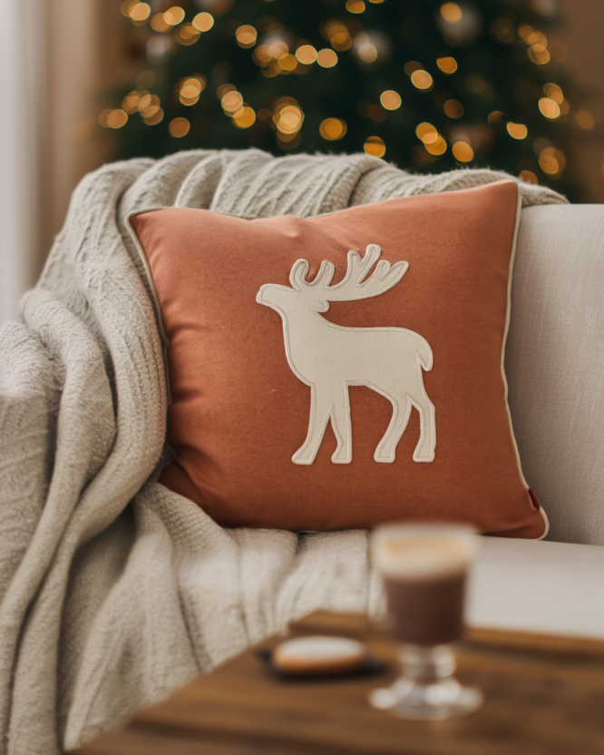 Jastëk dekorativ festiv me qëndisje dhe kordon