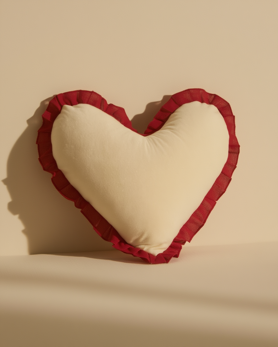 Romantik dhe i butë si vetë dashuria – ky jastëk dekorativ në formë zemre është detaji i përkryer për ta bërë çdo kënd të shtëpisë më të ngrohtë dhe të veçantë. Ngjyra e kuqe e thellë dhe frutullat krem i japin një prekje elegante dhe të dashur ambjentit tuaj. Ideale si dhuratë për Shën Valentin apo për të shtuar ndjesi dashurie dhe kujdesi në çdo ditë.