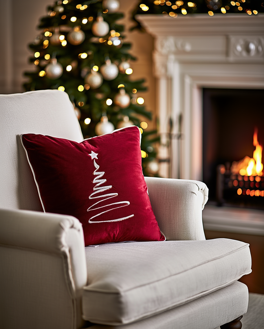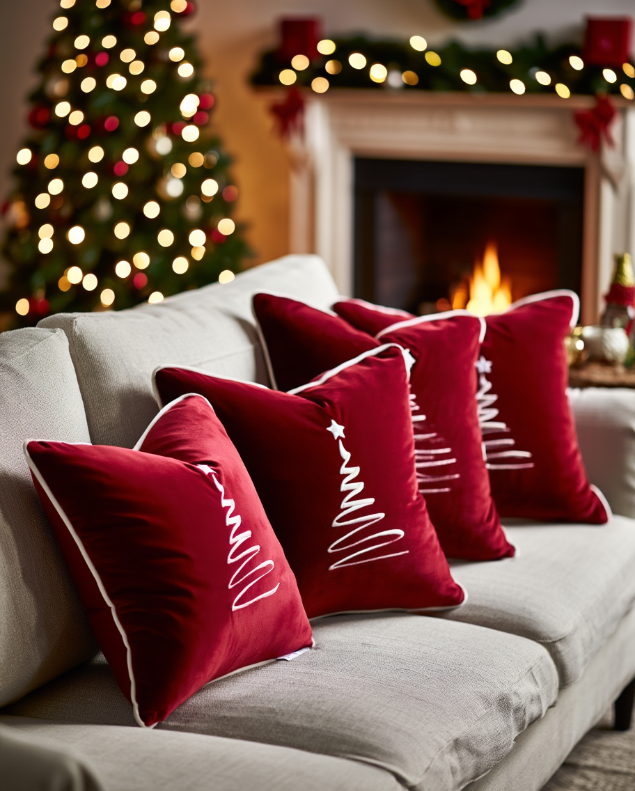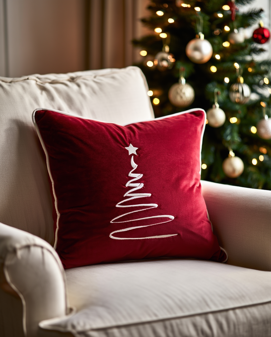 Jastëk dekorativ festiv velvet me qëndisje dhe kordon