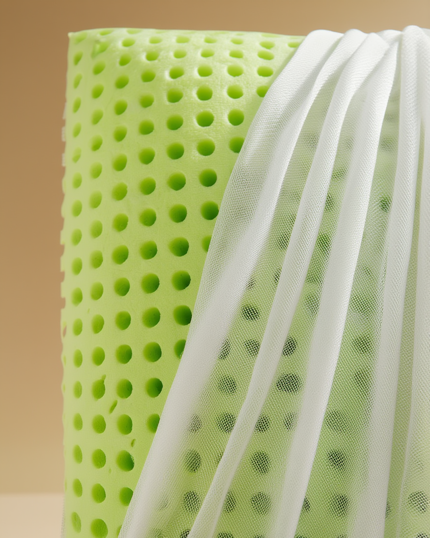 Jastëk anatomik Sensation Aloe me bërthamë memory foam, i formuar me kallëp dhe me strukturë të shpuar për ajrosje më të mirë. I punuar nga poliuretani viskoelastik, i pasuruar me mikrokapsula aromatike që ofrojnë ndjesi freskie dhe rehatie gjatë gjumit. I pajisur me këllëf jersey me zinxhir, praktik dhe i lehtë për t’u hequr.