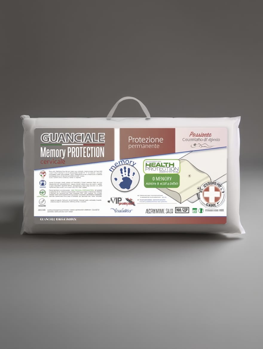 Përshkrimi: Jastëk MEMORY PROTECTION CERVICALE me 3 pozicione të ndryshme. Pozicioni i ulët i jastëkut është për të reduktuar pikat e presionit mes kokës dhe jastëkut. Pozicioni i lartë i jastëkut është për të mbeshtetur vertebrat dhe për të mbajtur një qëndrim korrekt. Zona qëndrore e jastëkut është krijuar për të arritur një efekt masazhues të kënaqshëm dhe aktivizon MIKRO – QARKULLIMIN..