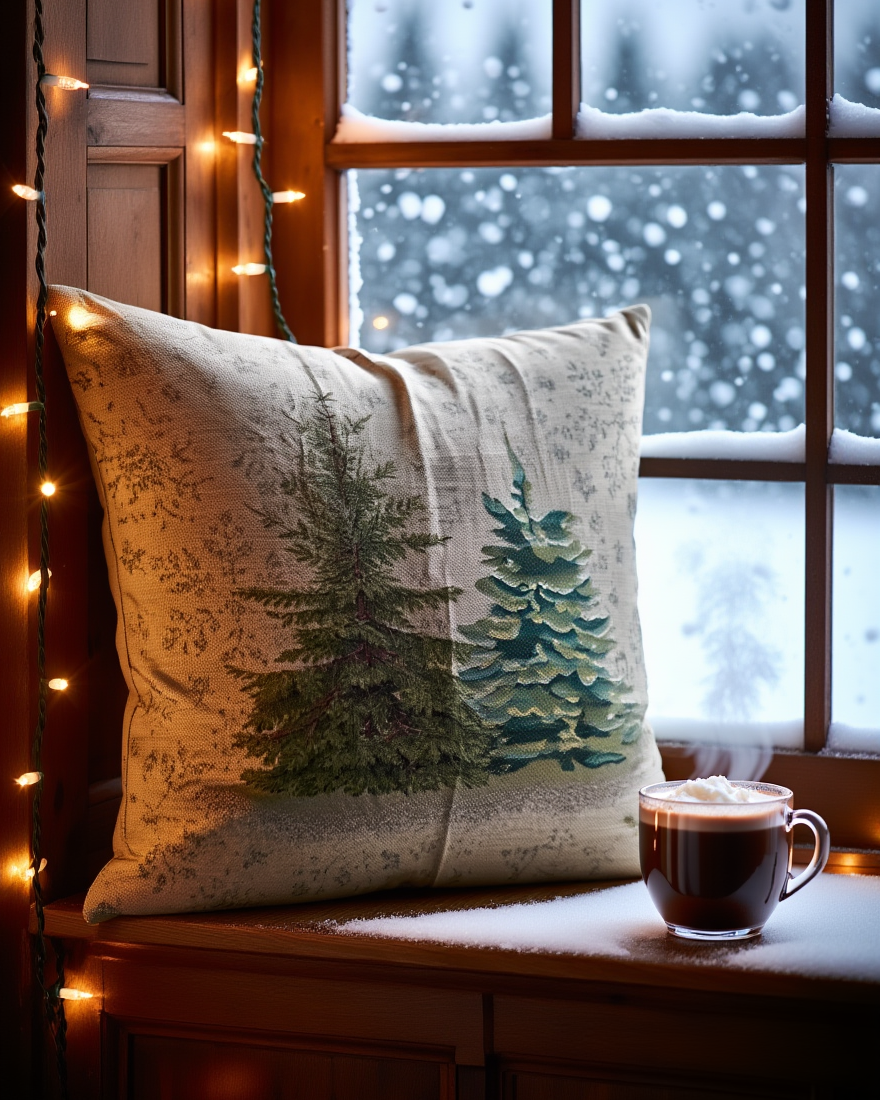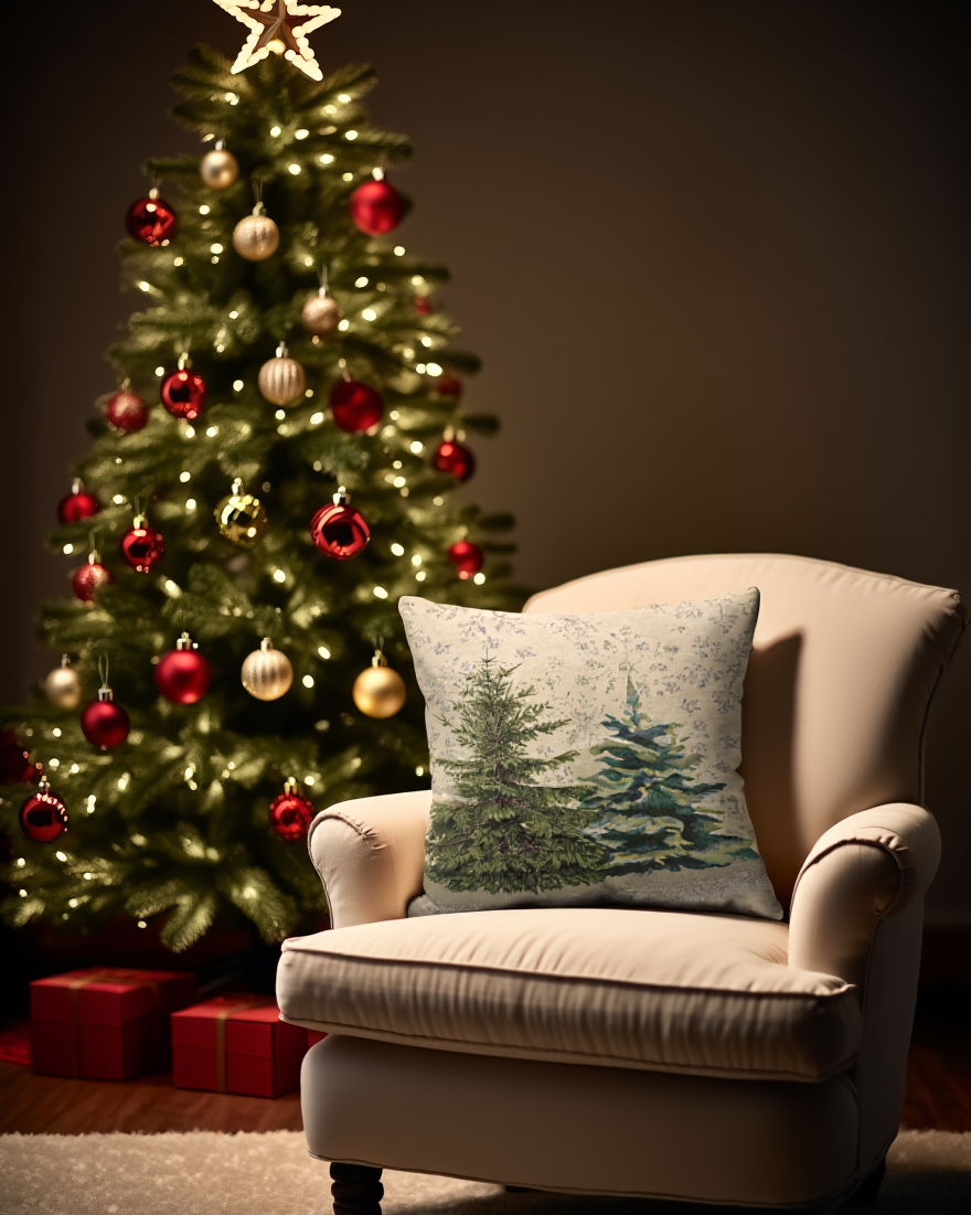 Këllëf jastëku dekorativ me bredh Krishtlindjesh