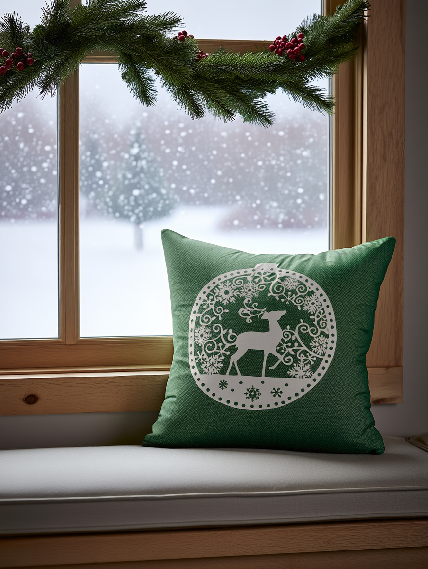 Këllëf jastëku dekorativ me drerë Krishtlindjesh