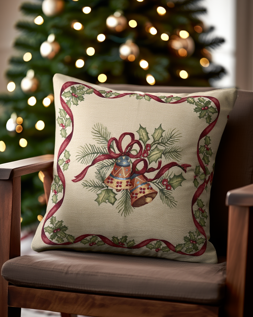 Këllëf jastëku dekorativ me Këmbanë Krishtlindjesh