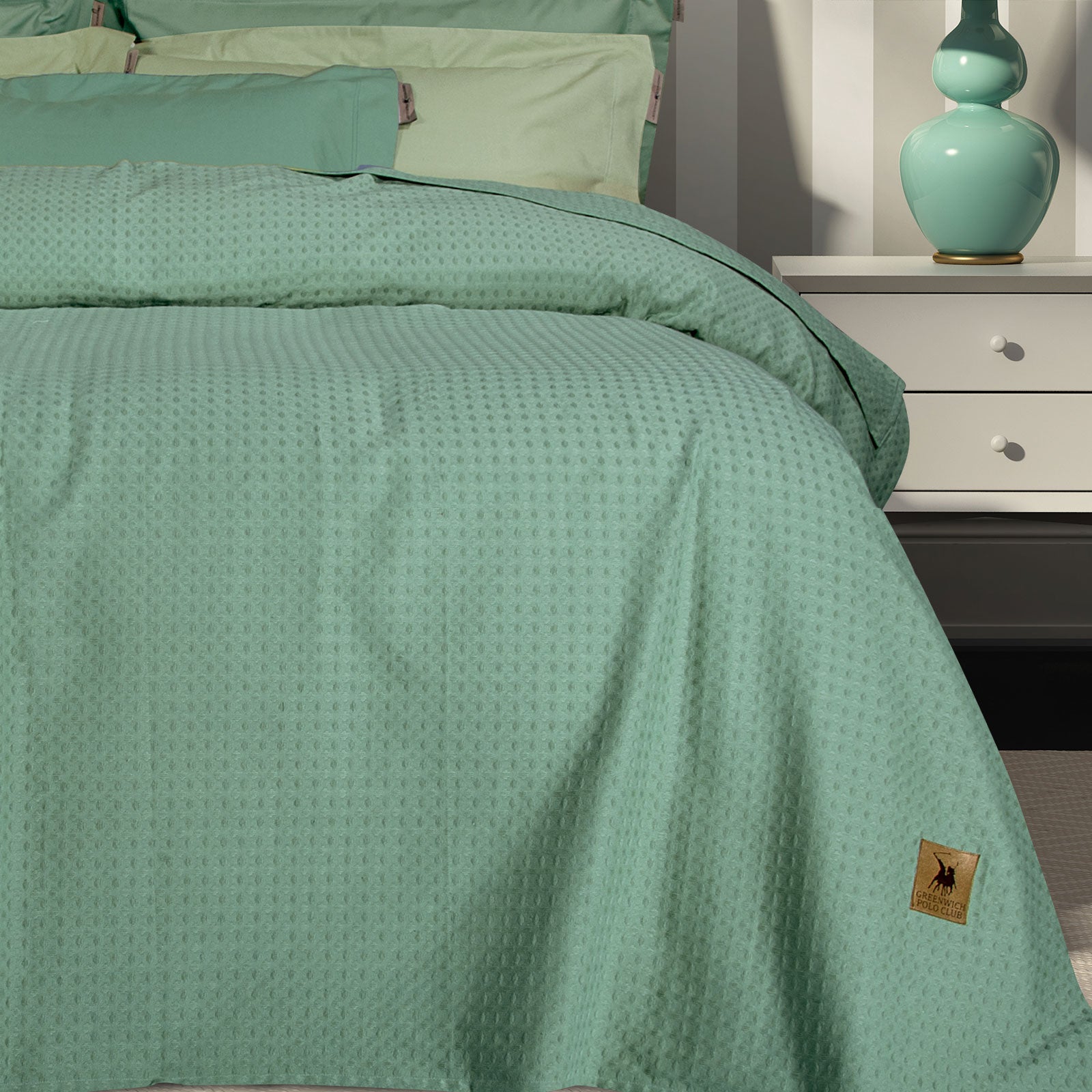 Përshkrimi: Kuvertë dopio 100 % pambuk nga Greenwich Polo Club. Lloji i endjes së pambukut e bën atë shumë të butë dhe i jep asaj një qëndrueshmëri të madhe në përdorim. Ajo që karakterizon koleksionin janë hijet e buta, modelet dalluese dhe stili pa kohë. Zgjidhni Greenwich Polo Club për të shijuar cilësi, stil dhe luks.