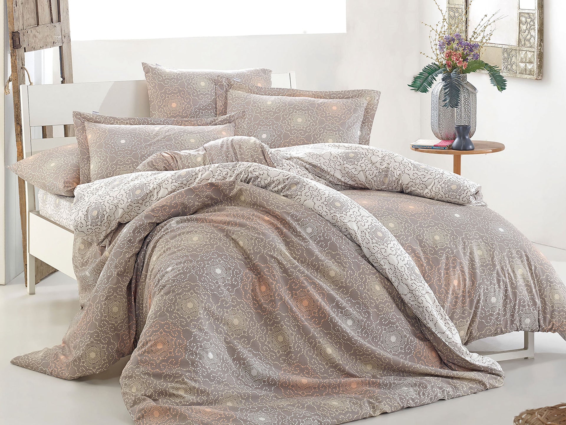 Përshkrimi: Set çarçafi zarf dopio dhe tek Marie Claire Paris, idealë për përdorim të përditshëm gjatë gjithë vitit. Ata janë shumë të butë dhe të lehtë për tu larë dhe hekurosur, pa kërkuar kujdes të veçantë. Seti i çarçafit zarf, përbëhet nga çarçafi i poshtëm, çarçaf i sipërm zarf dhe këllëfët e jastëkut.
