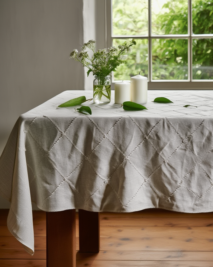 Shtoni hijeshi dhe elegancë në tryezën tuaj me këtë mbulesë tavoline prej linoje, e zbukuruar me qendisje dekorative fine. Materiali natyral i lino-s i jep një pamje të sofistikuar dhe të ngrohtë ambientit, ndërsa detajet e qendisjes e bëjnë të përsosur për darka festive apo momente të veçanta në familje. Praktike, e qëndrueshme dhe e lehtë për t’u kombinuar me çdo dekor – një zgjedhje ideale për ata që duan bukuri dhe cilësi në çdo detaj.
