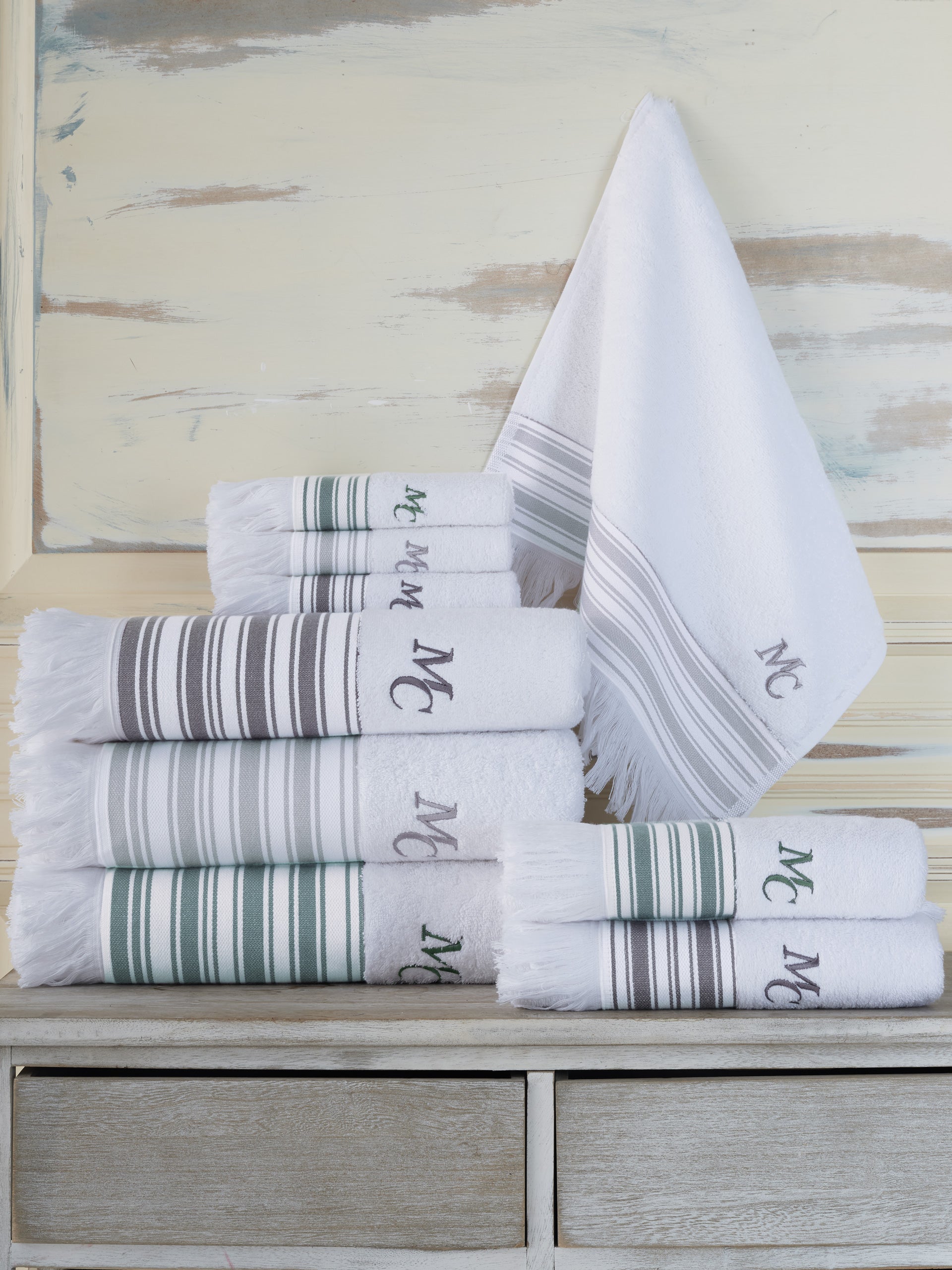 Përshkrimi: Peshqirët nga koleksioni Marie Claire Paris është prodhuar nga pambuku me cilësi të lartë, shumë absorbues dhe të qëndrueshëm, ndërsa ngjyrat e përdorura janë të padëmshme dhe antialergjike. E disponojmë në përmasë të ndryshme.