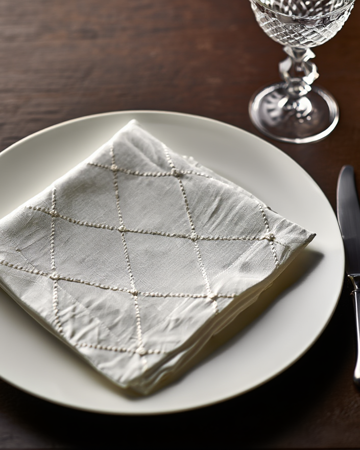 Shtoni një prekje elegance dhe finesse në çdo shtruarje tavoline me këtë pecetë linoje të zbukuruar me qendisje dekorative. E punuar me kujdes nga material natyral dhe cilësor, kjo pecetë kombinon stilin tradicional me estetikën bashkëkohore, duke e bërë të përsosur për festat apo çdo vakt të veçantë. Një detaj i vogël që sjell hijeshi të madhe në tryezën tuaj.