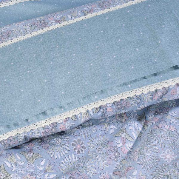 Përshkrimi: Set çarçafi dopio nga koleksioni Das Home, përbëhet nga 2 fletë çarçafi me përmasë 240x260 dhe 2 këllëf jastëku me bordurë me përmasë 50x70+5cm. Ajo që karakterizon koleksionin janë hijet e buta, modelet dalluese dhe stili pa kohë.