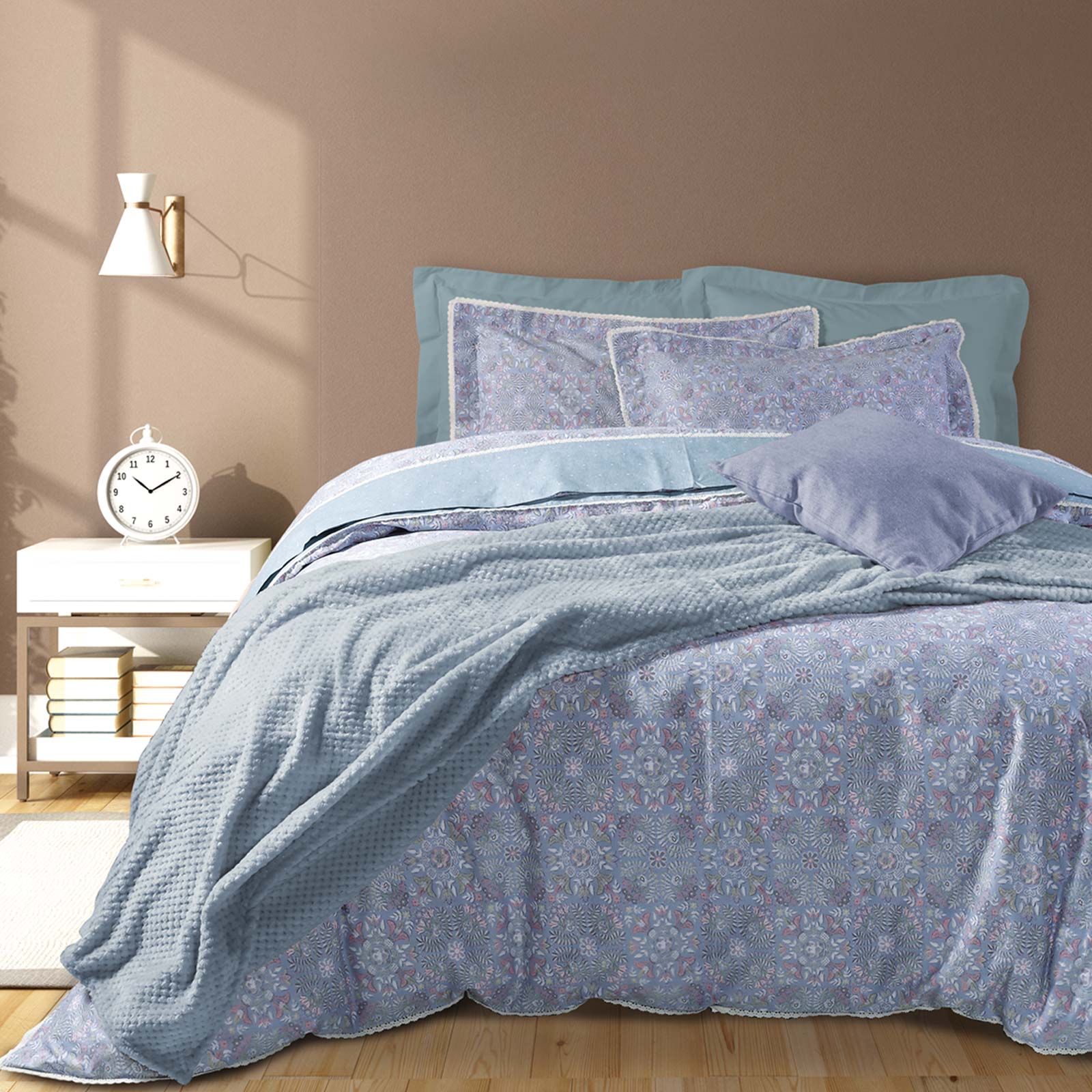 Përshkrimi: Set çarçafi zarf dopio, i cili përbëhet nga 1 çarçaf zarf me përmasë 220x240 dhe 2 këllëf jastëku me bordure me përmasë 50x70+5cm. Ajo që karakterizon koleksionin janë hijet e buta, modelet dalluese dhe stili pa kohë.