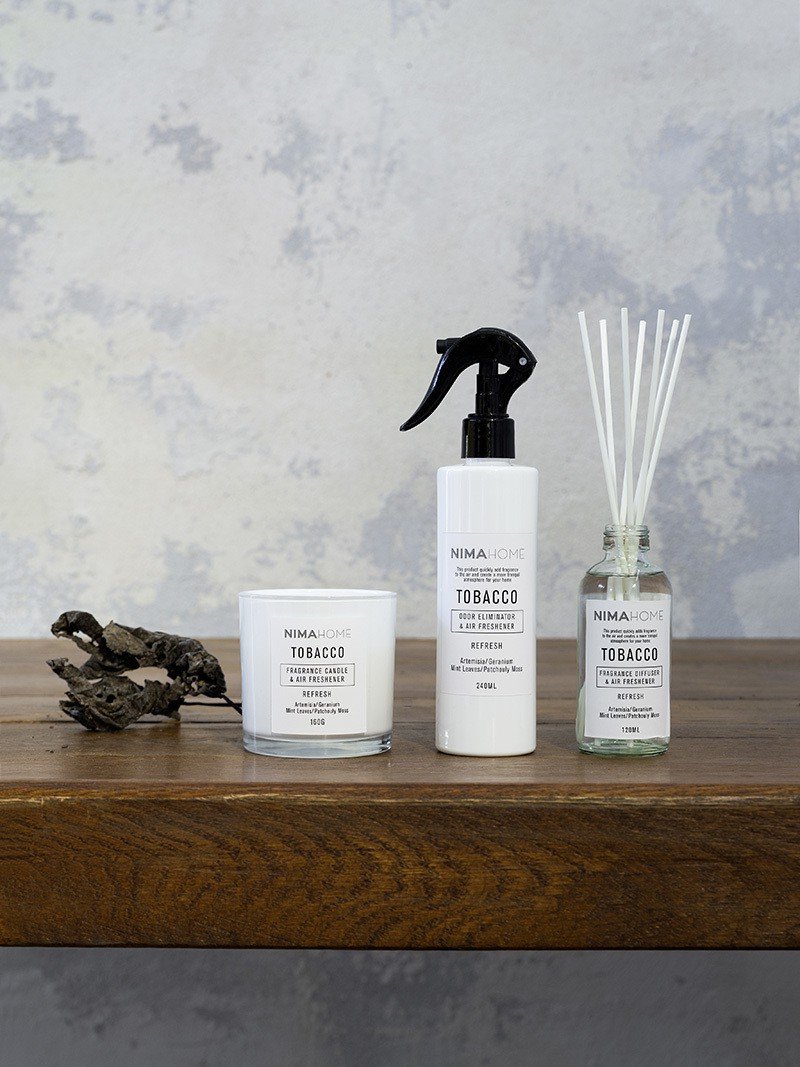 Përshkrimi: Spray AromatikTobacco me një aromë të mrekullueshme kundër pirjes së duhanit për shtëpinë. Kombinon aromat e freskëta të bimës së pelinit, barbarozës dhe gjetheve të mentës me një bazë të ëmbël dhe tokësore të myshkut të butë. Një hapësirë e mrekullueshme aromatike në formë sprajti për lehtësi në përdorim, pasi mund të spërkasni sa më shpesh që të jetë e nevojshme. Aroma ideale për kuzhinë, është aq intensive sa nevojitet për të mbuluar aromat e padëshiruara dhe aq e freskët sa nevojitet për t’i ofruar hapësirës një ndjesi të freskët dhe të pastër.